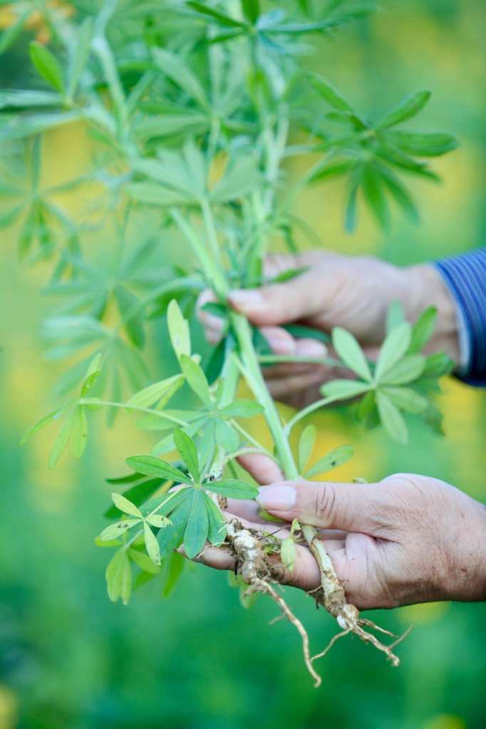花謝後茶農會把整棵植株鏟進土中,這樣除了根瘤菌可以抓住氮肥,鏟進土中的莖跟葉還可以增加纖維素讓土質鬆軟健康。改善土質也是向日葵、油菜等多數花肥的主要目的,但它們比較無法固氮。